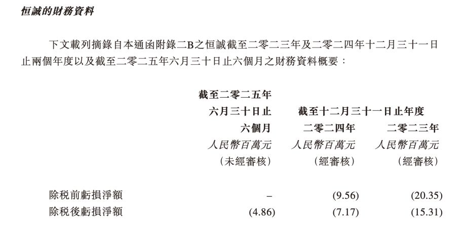 据悉,恒诚家俬主营业务为制造及销售沙发,从其业绩表现来看,2023年及2024年,恒诚家俬分别税后亏损1531万元、717万元,2025年上半年亏损486万元。而科学城(广州)融资同样在2025年上半年,出现了1754万元的税后亏损。