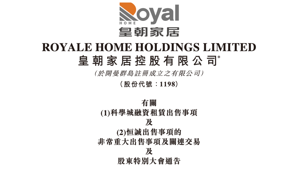 皇朝家居(01198.HK)在一天内,同时发布了两项重大资产出售计划。11月10日,皇朝家居发布公告称,拟向控股股东科学城(广州)投资集团有限公司出售科学城(广州)融资租赁有限公司18.06%股权,代价约为4.17亿元。