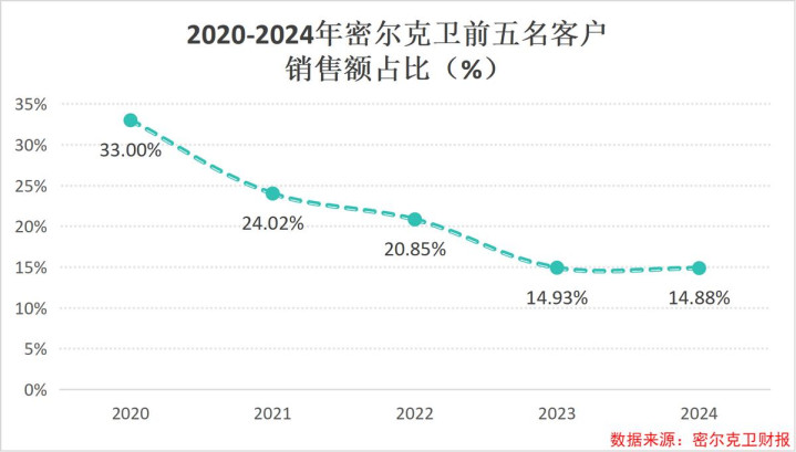 与此同时,公司客户结构持续优化,前五大客户销售额占比从2020年的33.00%降至2024年的14.88%,2025年半年报显示公司有效客户超万家,分散化降低依赖风险并为分销提供了客户基础。