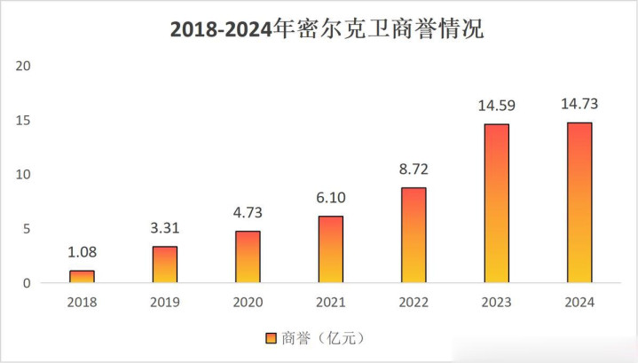在2018到2024年的并购高峰期,密尔克卫商誉余额逐年走高,与全国化网络扩张的节奏高度契合。