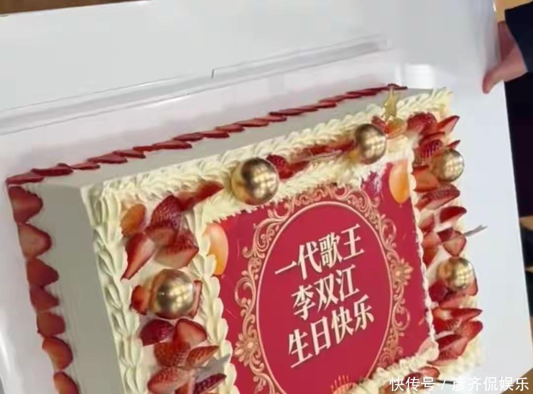 大家拍着手唱生日歌,蛋糕上写着“一代歌王李双江生日快乐”,现场气氛一下就变了,李双江明显被打动了,眼圈发红,说话也带了点哽咽。