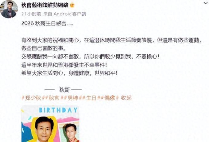 2026年3月,当79岁的郑少秋在影迷会账号上平淡地写下那篇退休感言时,华语娱乐圈的一扇大门仿佛重重地关上了。