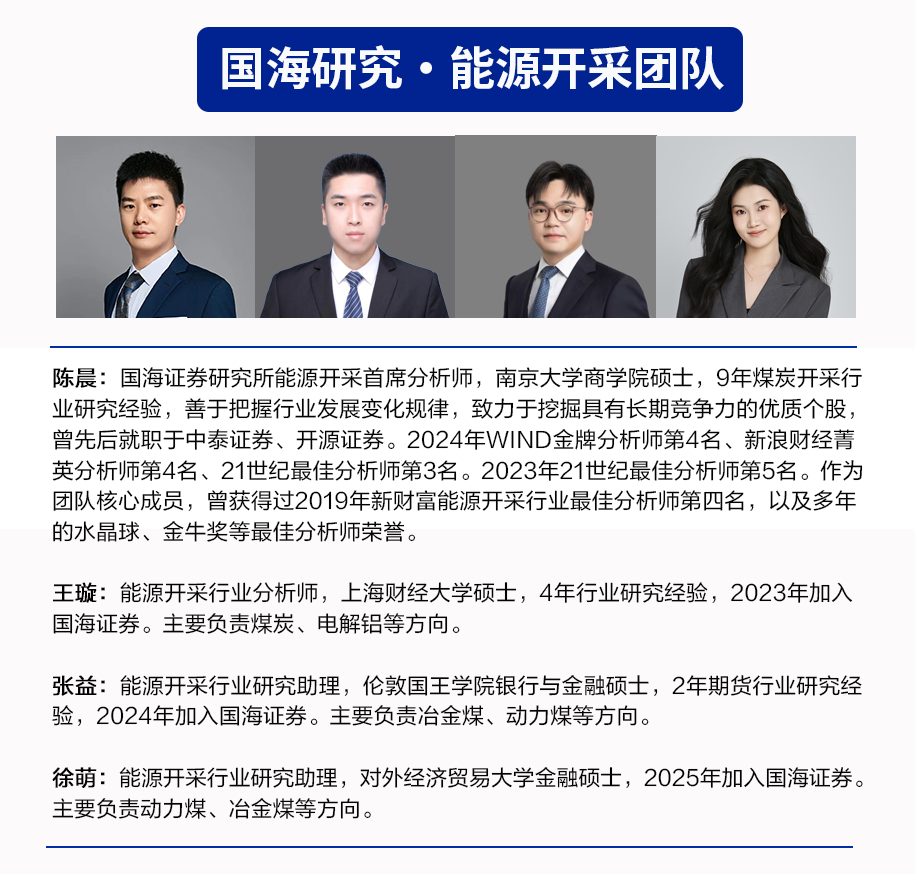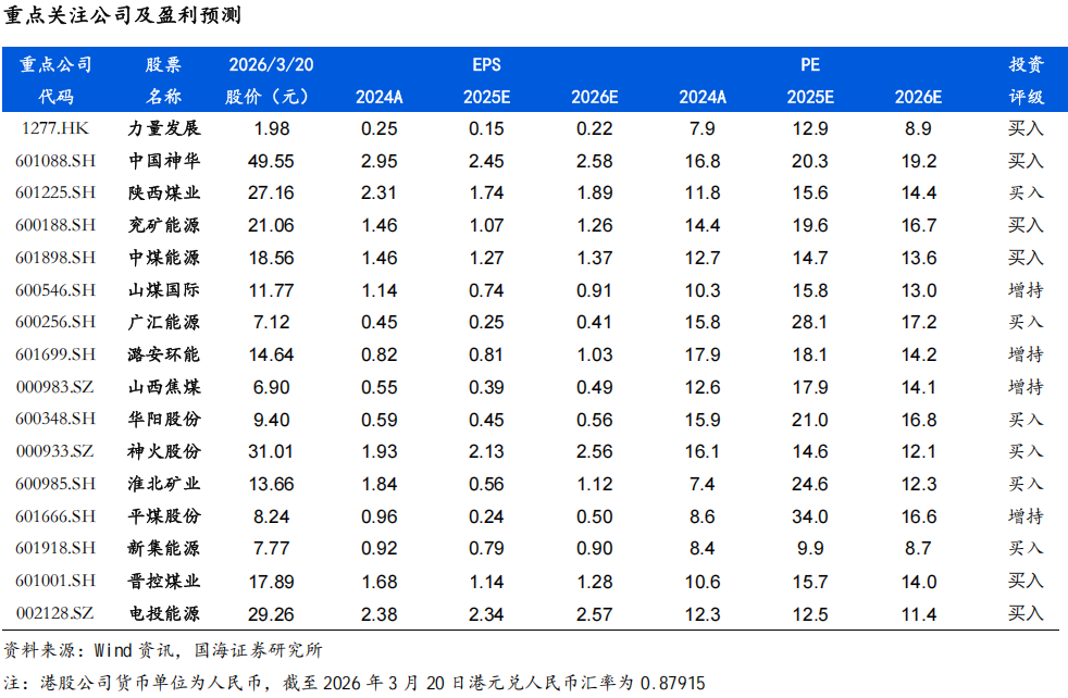 从大方向来看,煤炭开采行业供应端约束逻辑未变,需求端可能阶段性起伏波动,价格亦呈现一定震荡和动态再平衡。复盘行业30年经验,煤炭价格呈现震荡向上趋势,背后的驱动因素包括人工成本刚性上涨,安全投入、环保投入的持续加大,原材料动力等大宗商品涨价,以及地方政府加大征税力度等,从行业发展大趋势来看,上述驱动因素依然存在,煤价长期内仍然有上涨的诉求,过程可能是曲折的,但是方向应该是明确的。头部煤炭企业资产质量高,账上现金流充沛,呈现“高盈利、高现金流、高壁垒、高分红、高安全边际”五高特征。同时2025年起国家能源集团、山东能源集团、中国中煤能源集团、国家电投集团等多家煤炭央国企对旗下上市公司启动增持与资产注入计划,亦释放利好,彰显煤企发展信心、增厚企业成长性与稳定性。建议把握低位煤炭板块的价值属性,维持煤炭开采行业“推荐”评级。重点关注:(1)稳健型标的:中国神华、陕西煤业、中煤能源、电投能源、新集能源。(2)动力煤弹性较大标的:兖矿能源、晋控煤业、广汇能源、力量发展。(3)焦煤弹性较大标的:神火股份、淮北矿业、平煤股份、潞安环能、山西焦煤。
