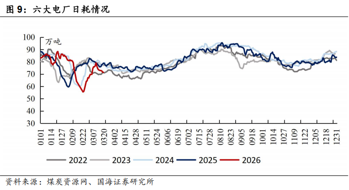 本周六大电厂日耗环比下降:截至3月19日,六大电厂日耗为71.5万吨,周环比下降3.1万吨。