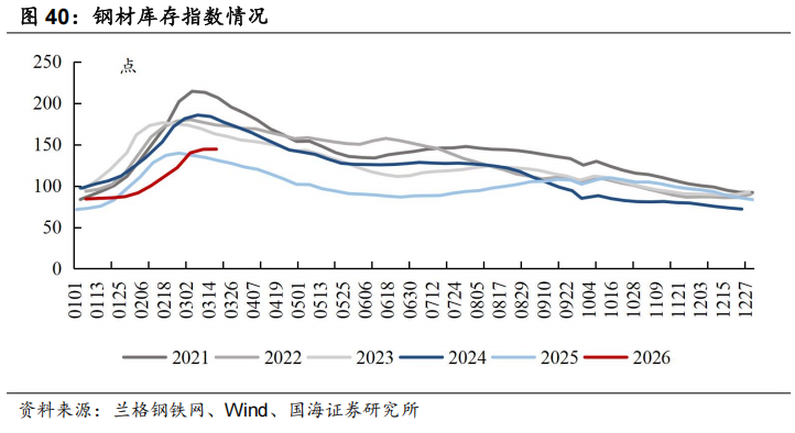 本周钢材库存指数环比上升:截至3月18日,本周兰格钢材库存指数(综合)为144.4点,周环比上升0.2点。