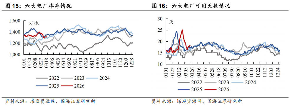 本周六大电厂可用天数环比上升:截至3月19日,六大电厂可用天数为18.3天,周环比上升1.0天。