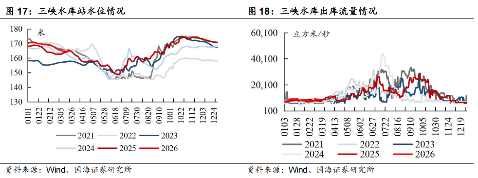 本周三峡水库出库流量环比下降:截至3月21日,三峡水库出库流量为8720立方米/秒,周环比下降60.0立方米/秒,同比下降3.6%。