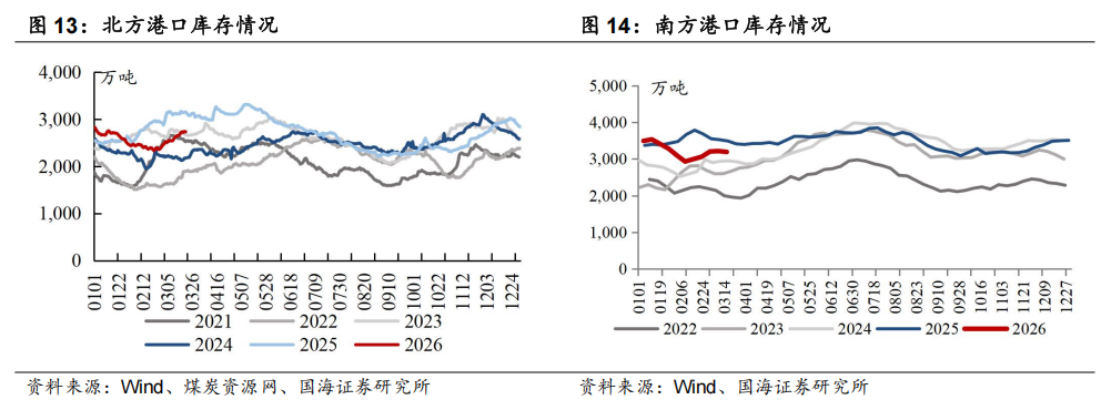 1.2、动力煤供需:北方港口库存环比上升