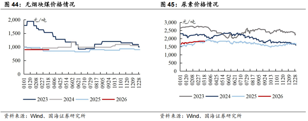 本周无烟煤市场小结及展望:产地方面,主流矿井生产稳定,另有部分矿井受井下生产条件影响,煤质及产量受到一定限制,市场结构性资源略紧张;需求端,电煤需求逐渐步入淡季,化工及钢厂以刚需采购为主,本周无烟煤价格环比持平。尿素方面,农业返青肥备肥需求有所放缓,本周尿素价格环比持平。